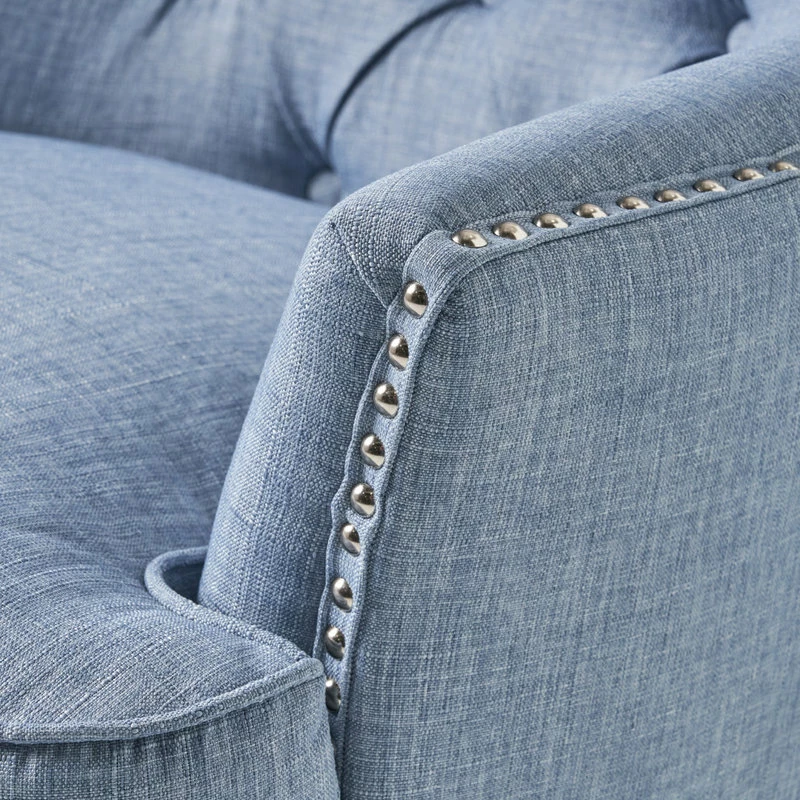 NAILHEAD ACCENTS: This chair spares no expense when it comes to its finishing details. Expertly styled, this piece has tasteful nailhead accents bordering the bottom edge. Each nailhead is individually applied for a beautiful, handmade touch.