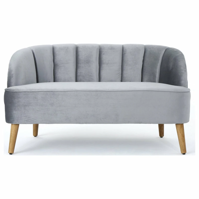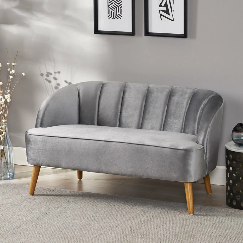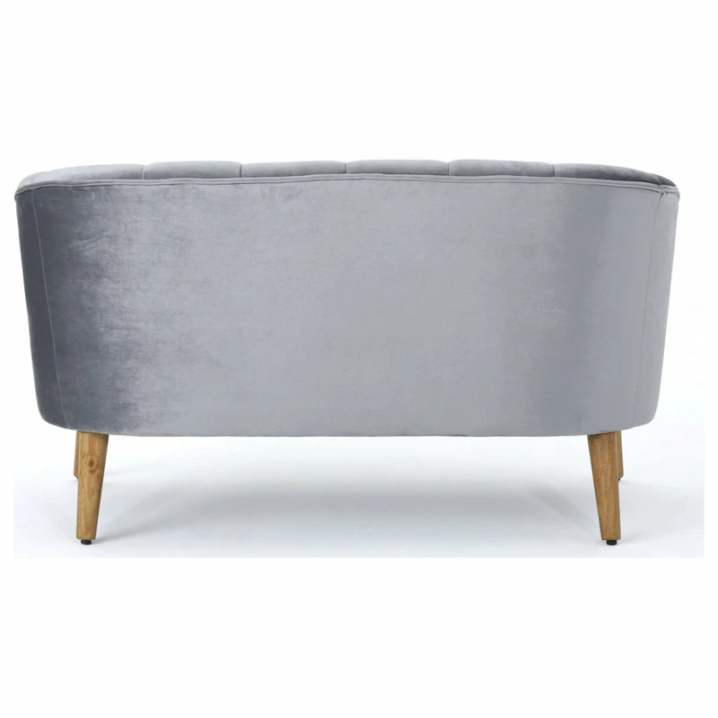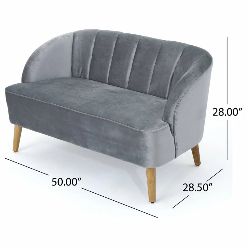 This beautiful, seashell-backed loveseat is the perfect complement for your existing living room furniture. Our loveseat takes a gorgeous classic look and brings an impressive modern twist, easily anchoring your decor in an atmosphere of elegance. Ideal for watching television, reading a good book, or just hanging out, this piece is expertly upholstered from the highest quality velvet and set on gorgeous rubberwood legs. Finished with iconic splayed legs for a stunning mid-century modern look, you’ll love this piece as much as we do.