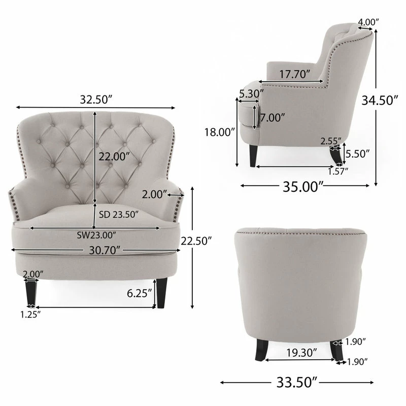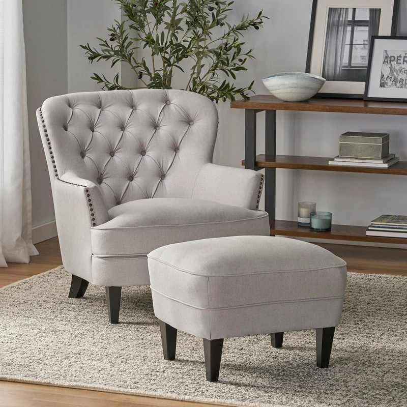 CONTEMPORARY DESIGN: Featuring stunning nailhead trim, button tufting, and plush upholstery, our club chair and ottoman set offers the look, feel, and design of a truly contemporary piece. With a minimalistic yet refined structure, this set brings out a simplistic style that emphasizes comfort and functionality.
