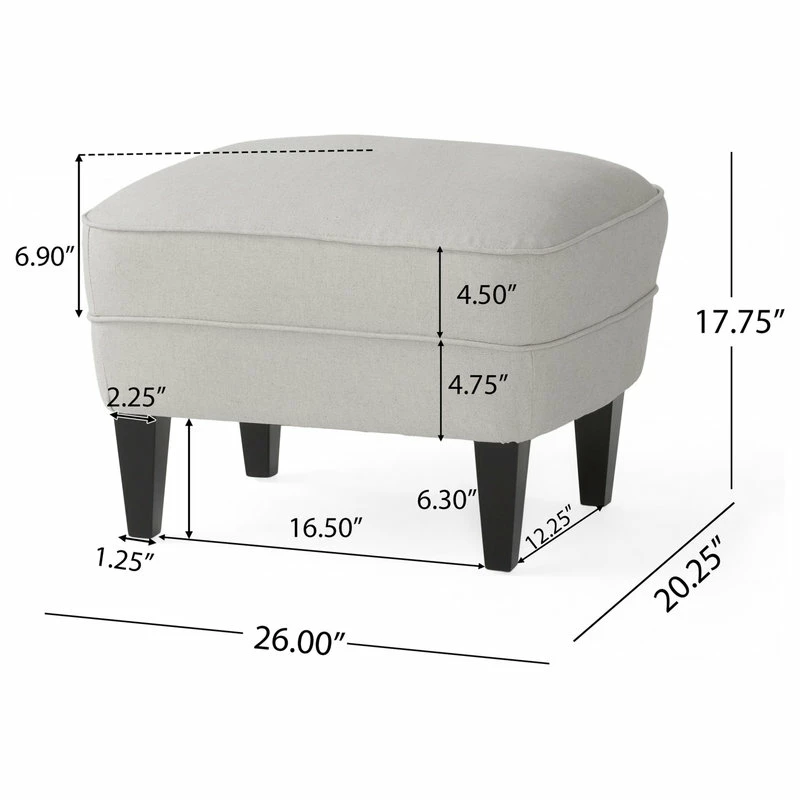 - Ottoman Dimensions: 20.25 inches deep x 26.00 inches wide x 17.75 inches high
