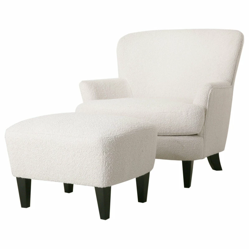 CONTEMPORARY DESIGN: Featuring soft boucle upholstery and refined birch wood legs, our club chair and ottoman set offers the look, feel, and design of a truly contemporary piece. With a minimalistic yet refined structure, this set brings out a simplistic style that emphasizes comfort and functionality.