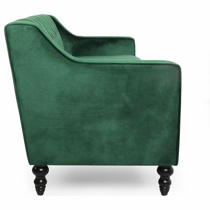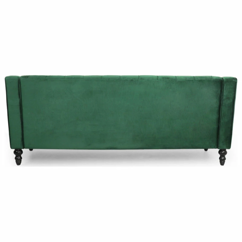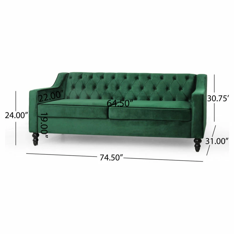 Stretch out in leisure on a lovely sofa that will not only anchor your home in refined style but also offer luxurious comfort for you and your guests. Featuring velvet upholstery, this sophisticated sofa is the perfect addition for any interior space. This takes gorgeous button tufted diamond stitching and sloped arms for a graceful structure, easily anchoring your decor in an atmosphere of contemporary elegance. This sofa is finished with beautifully turned wood legs, bringing impressive style and outstanding durability to your home.