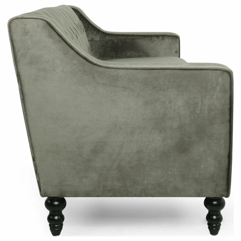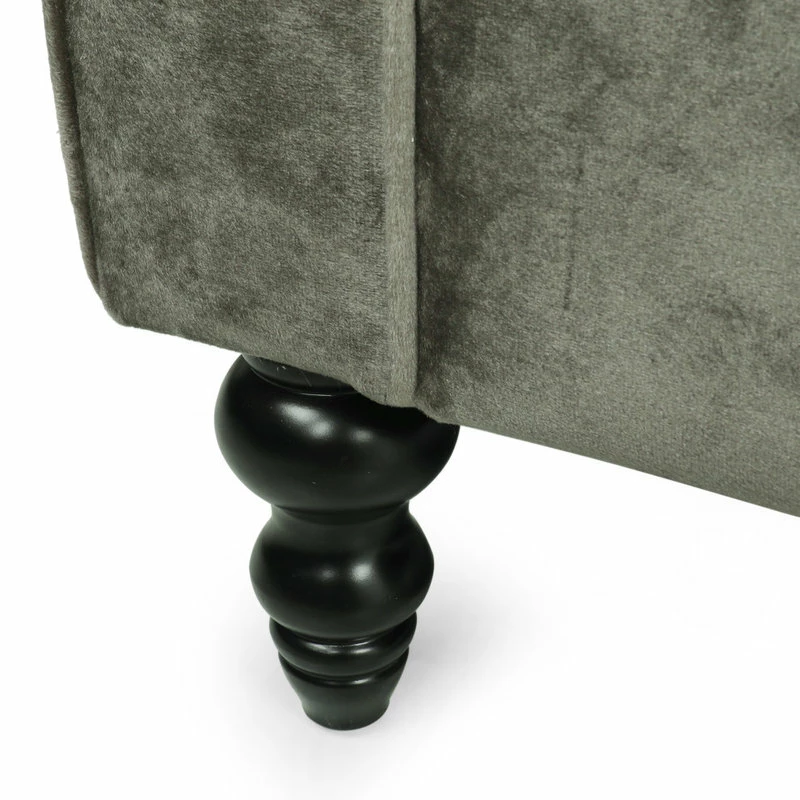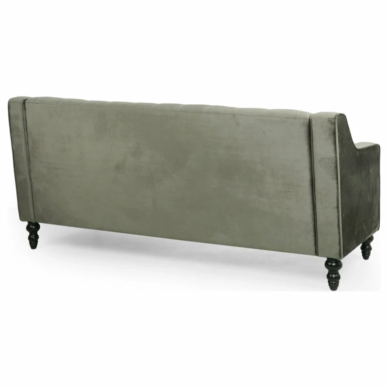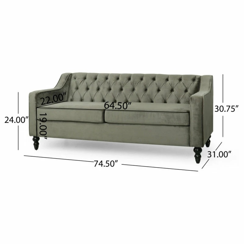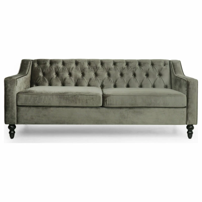 Stretch out in leisure on a lovely sofa that will not only anchor your home in refined style but also offer luxurious comfort for you and your guests. Featuring velvet upholstery, this sophisticated sofa is the perfect addition for any interior space. This takes gorgeous button tufted diamond stitching and sloped arms for a graceful structure, easily anchoring your decor in an atmosphere of contemporary elegance. This sofa is finished with beautifully turned wood legs, bringing impressive style and outstanding durability to your home.