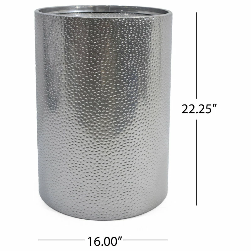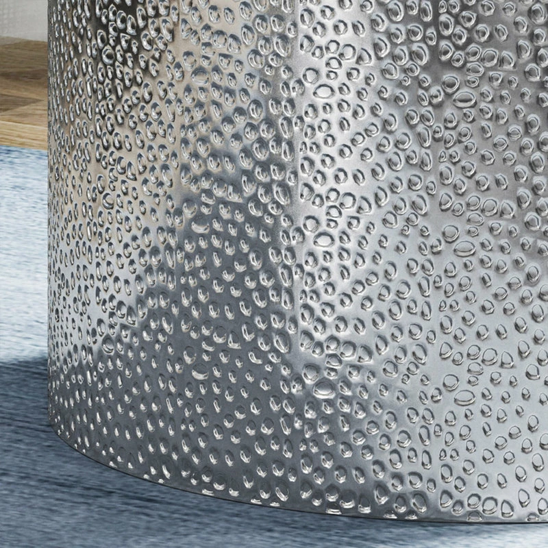 From sleek elegant décor to industrial influences, our accent table is created to give your existing furniture an extra boost of sophisticated style. Featuring a gorgeous hammered surface, our versatile side table can act a standalone accent piece or can offer up a tray of snacks for your guests. With an iron frame welded together to form a cylindrical silhouette, this showcases a brilliant textured finish and a metallic sheen that will enhance the look of your home for years to come.