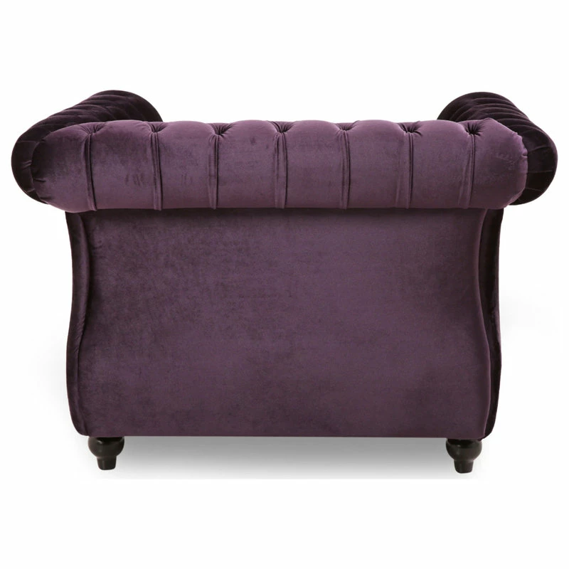 Live a life of luxury with a club chair that gives you everything from incredible textures to exquisite style. This Chesterfield inspired club chair is the ideal addition to any living room with its classic design and traditional elements such as deep button tufting, scrolled arms, and nailhead accents. Featuring soft velvet upholstery, this chair stands as a streamlined statement piece that can change the whole flow of your living room, creating an open, clean space. Finished with beautifully turned legs, our club chair provides an elegant touch to any room.