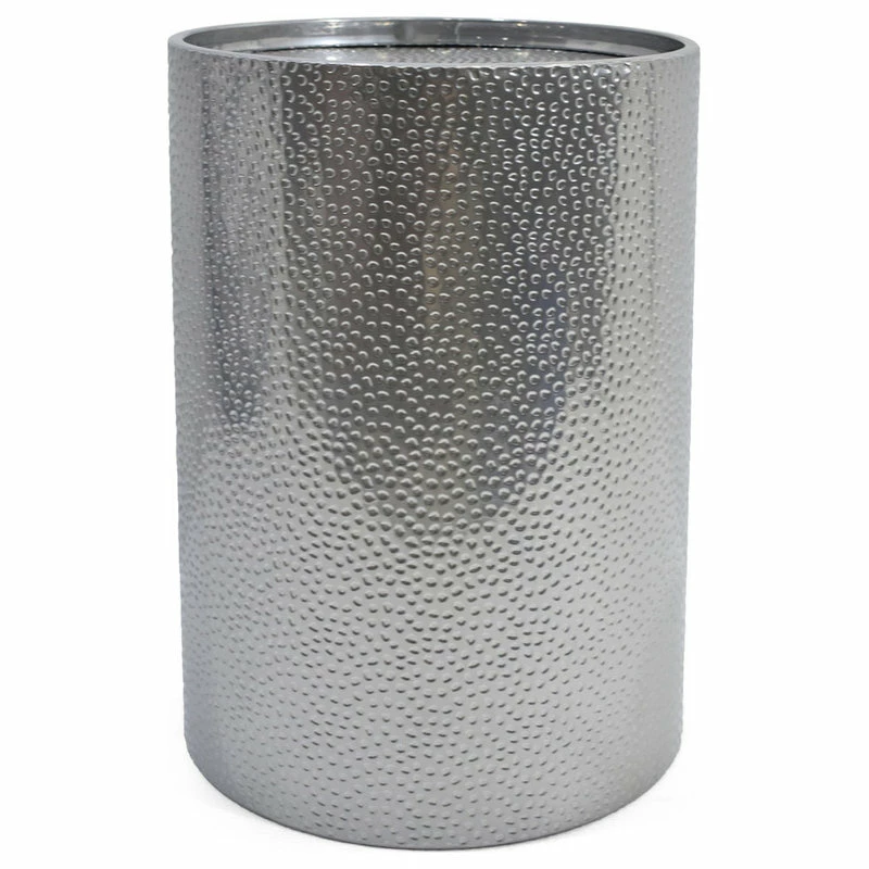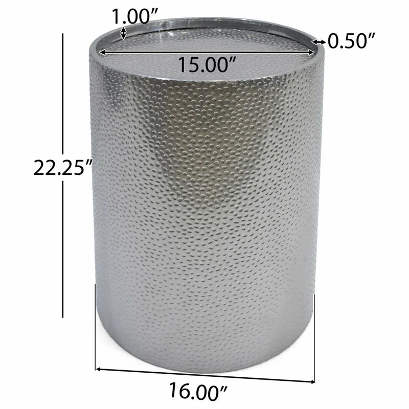 From sleek elegant decor to industrial influences, our accent table is created to give your existing furniture an extra boost of sophisticated style. Featuring a gorgeous hammered surface, our versatile side table can act a standalone accent piece or can offer up a tray of snacks for your guests. With an iron frame welded together to form a cylindrical silhouette, this showcases a brilliant textured finish and a metallic sheen that will enhance the look of your home for years to come.