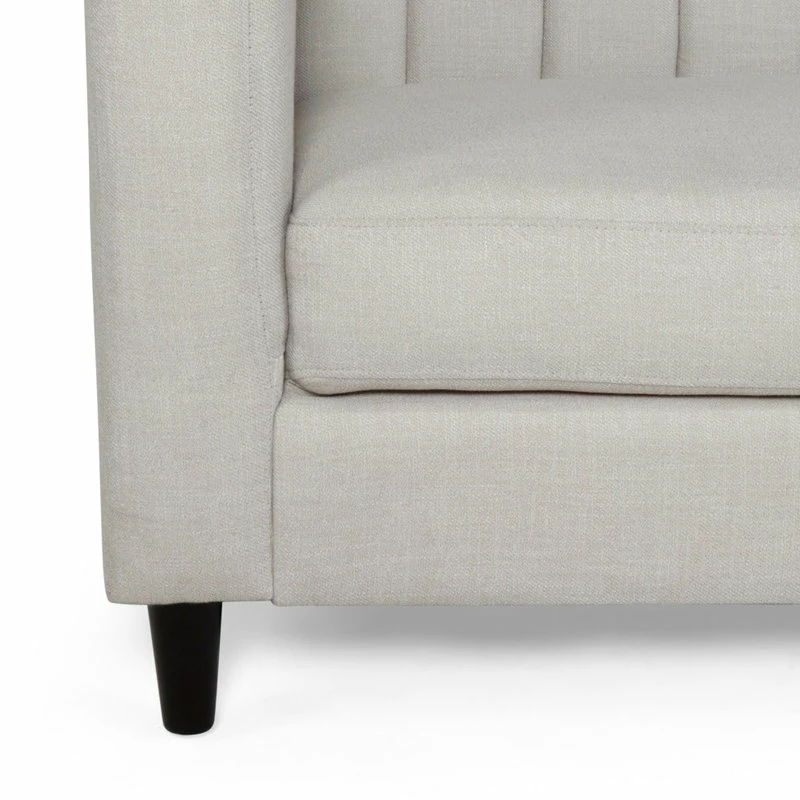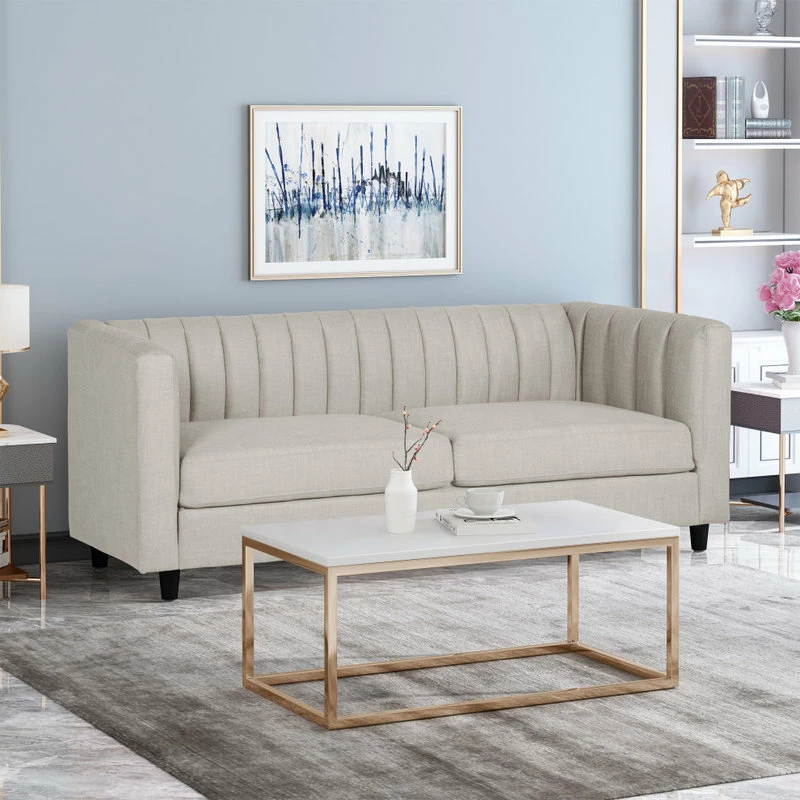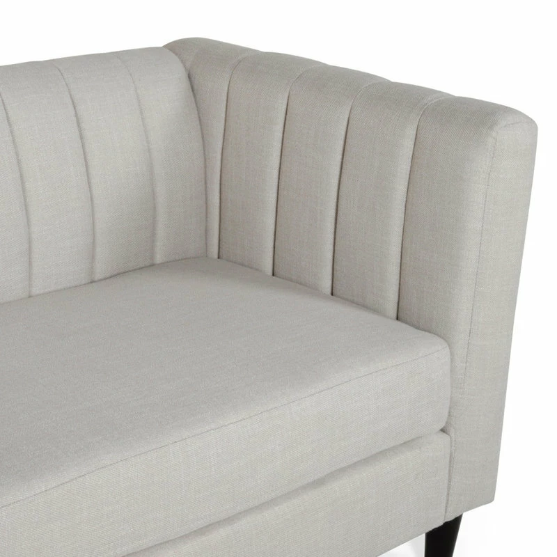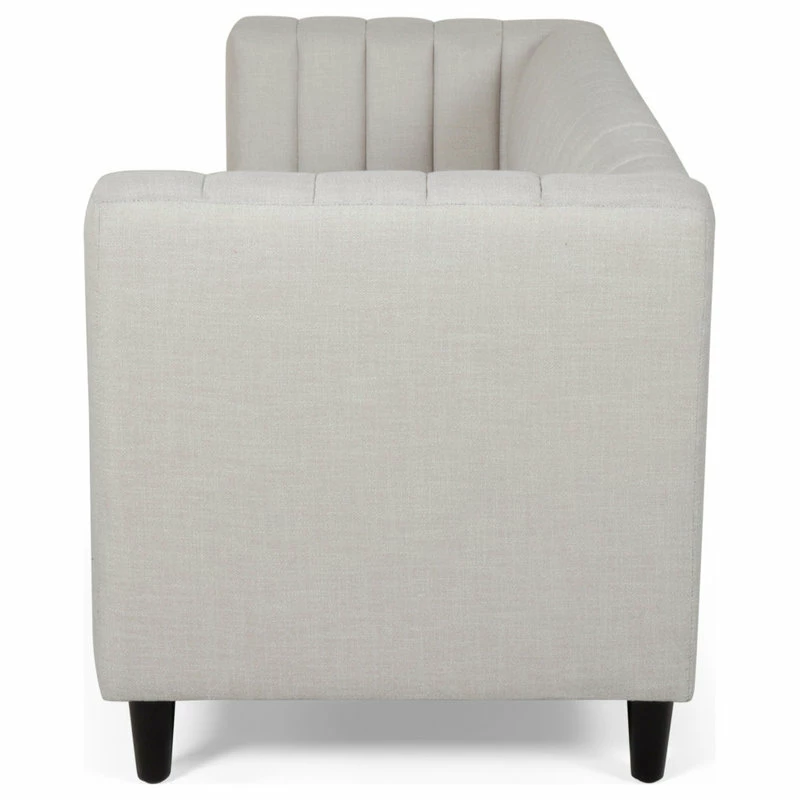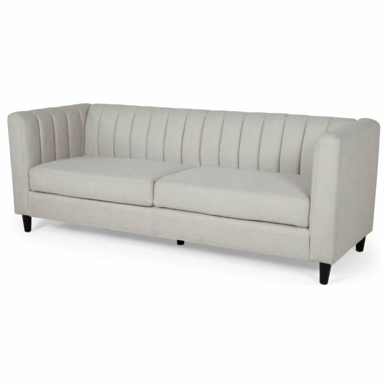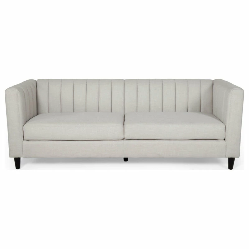 Looking for a sleek yet comfortable living room arrangement? Perfectly balance the atmosphere of your room with a sofa of refined design. With smooth upholstery and deep channel stitching, our impressive sofa offers your interior space a charming contemporary upgrade. This three-seater sofa features a clean two-cushion design for cozy seating that will enrich your Friday night movie experiences in the comfort of your own home. Finished with beautifully tapered birch wood legs, this exquisite sofa will make an ideal centerpiece that complements any decor.
