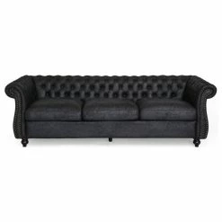 SCROLLED ARMS: To complete the chesterfield look, this sofa features scrolled arms. Not only does it add an air of class to the sofa and your room, but it also provides a more comfortable place to lean against while relaxing on your sofa.