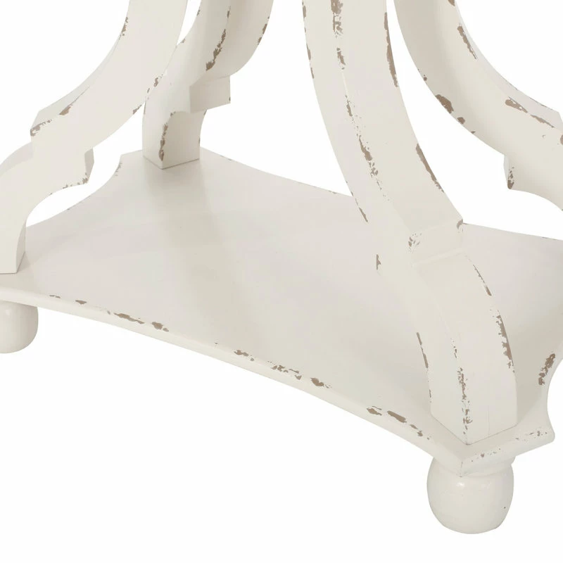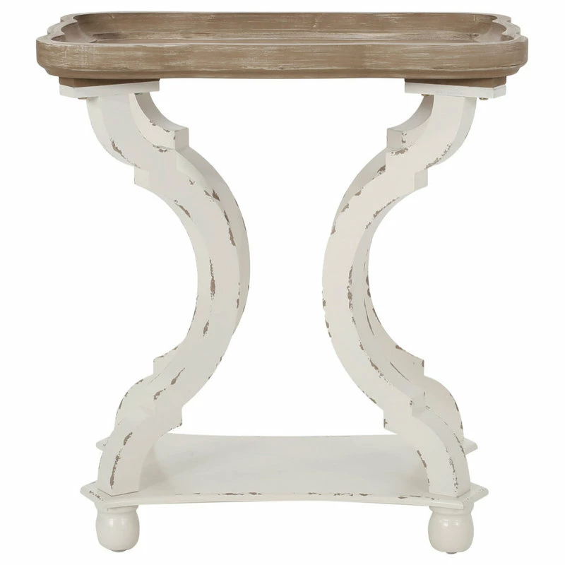 Add a dash of quaint refinement to your living room arrangement with an accessory of incredible charm. Featuring a soothing French country look, this accent table brings a lovely country touch and a sense of sophistication to your decor. This table showcases a beautiful hourglass base and lipped rectangular tabletop that are both finished with ornate curves for an elegant atmosphere. From your living room to foyer, this table seamlessly blends together practicality and aesthetics to create an accessory that will last you for years to come.