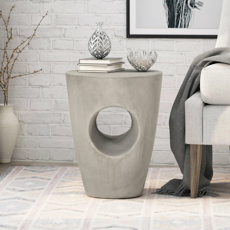 LIGHTWEIGHT CONCRETE: This side table is constructed with lightweight concrete for a smooth look. This provides a highly durable structure that can hold a substantial amount of weight.