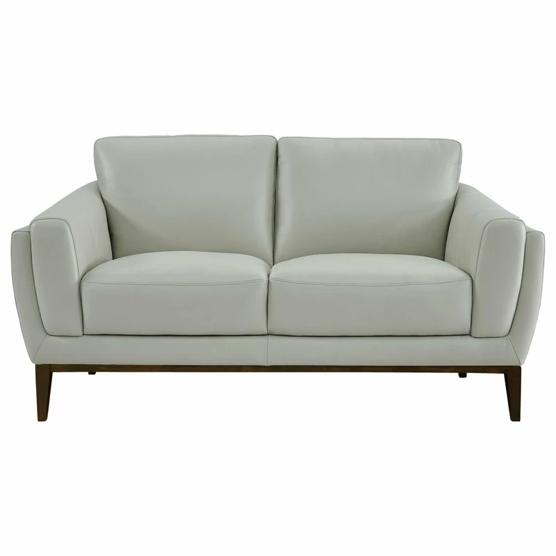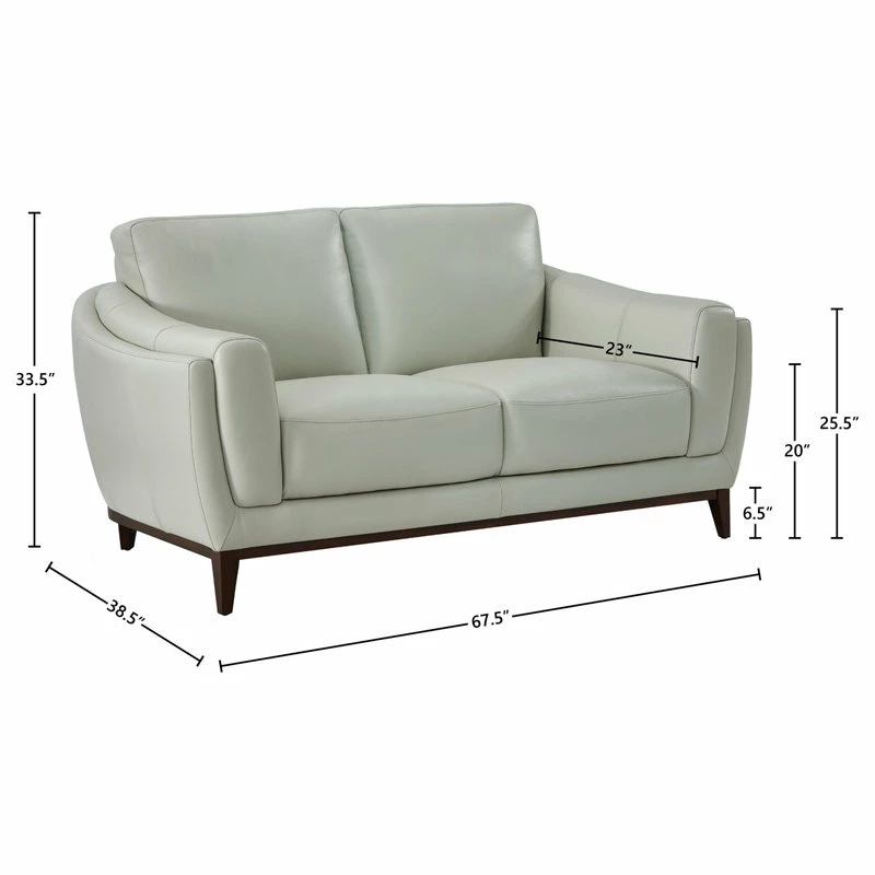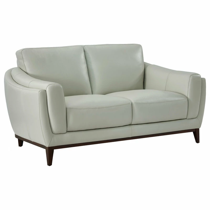 This glamorous leather loveseat will not only brighten any room, but also make your other accent colors pop dramatically. The plush cushions are filled with a higher than average density foam, meaning a longer lived, more comfortable loveseat, while the hardwood and hardwood laminate frame is built to last. A solid wooden base in a dark finish makes for a stunning contrast – your living room will be straight from the movies.
