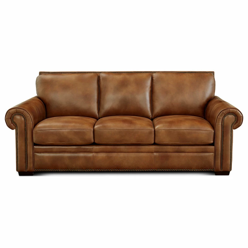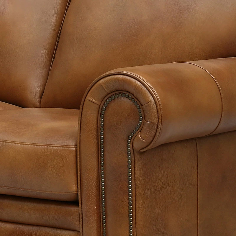 The warm, natural texture of cowhide is a timeless hallmark of luxury. The Toulouse features 100% top grain cowhide leather on the cushions and front fascia, and soft split leather on the sides and back. A classic rolled arm design is tastefully accented with a nail head trim, and the higher than average foam density (2.1 lbs per sq ft) means a longer lasting, more comfortable sofa. Build out your living room in style.