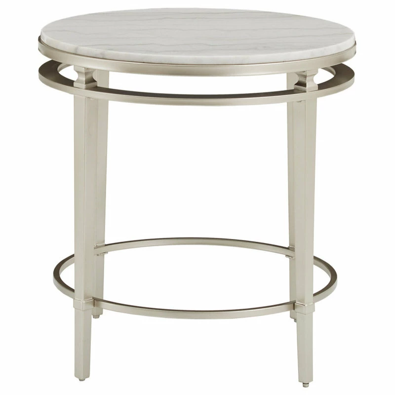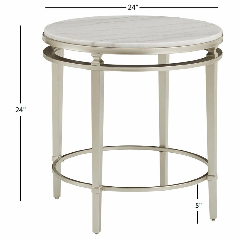 Inspire Q Milroy Champagne Silver Finish Round Marble Top End Table