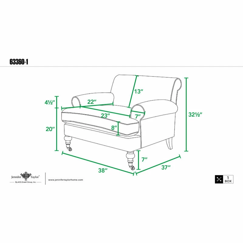 The Alana Seating Collection by Jennifer Taylor Home is American country refinement and comfort at its best. The iconic Lawson style is reimagined with fluffy seat cushions, a tight back, and gently rolled recessed arms. Pretty enough to be dressed up in a sitting room yet comfortable for lounging and relaxing, the Alana is perfect for any space in the home. Featuring removable and reversible seat cushions for versatility, and solid wood legs with front casters for mobility. See the complete collection for the matching sofa and armchair.