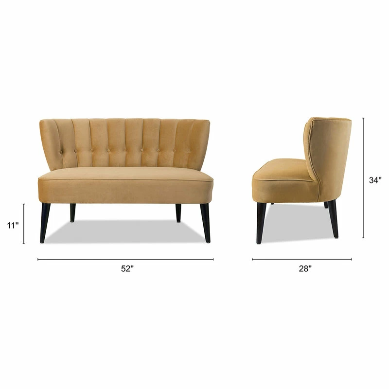 Comfort and style all in one. The Becca Collection settee by Jennifer Taylor Home is an ideal choice for the entryway, hallway, or living areas. Design features such as vertical channel tufting with buttons, a curved back, and tall tapered solid wood legs are sure to make this piece stand out in any room. Beautifully hand-crafted, the kiln-dried solid wood frame upholstered in high-quality fabric and premium high-density foam padding will ensure this piece provides years of comfort and use.