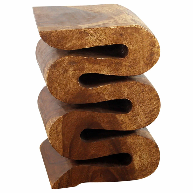 Hard to tell if it should be heralded as an engineering feat, be placed in museum of impressionist art, or be enjoyed for any purpose you desire. Try as an entry way table or display stand. Hand carved, hand finished with natural oil. Each one is truly one-of-a-kind, so consider two. At 12 inches x 14 inches and 20 inches high finished in Walnut tone Oil