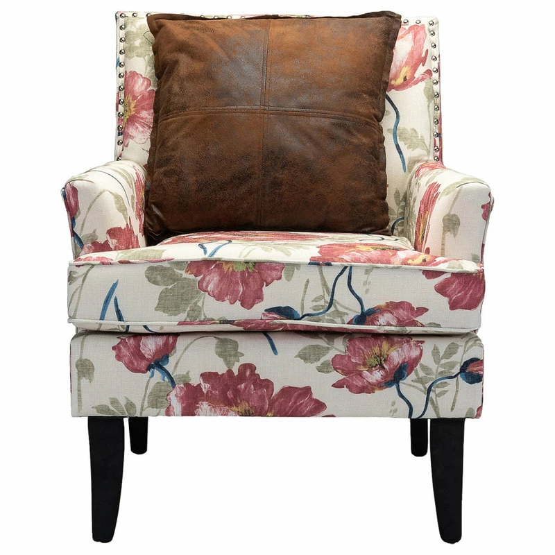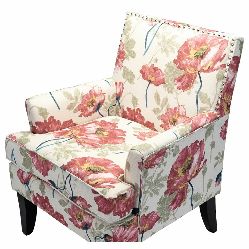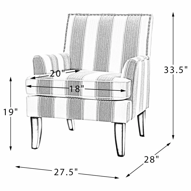 Classic style and contemporary design combine in this inviting armchair. Founded on a solid birch wood frame, this chair strikes a club chair silhouette with a slightly slanted backrest, clean track arms, and tapered block feet. Its classic design along with its gorgeous pattern and gleaming nailhead trim makes this chair a must-have in any home. It will be suitable for those urban dwellers with limited space.