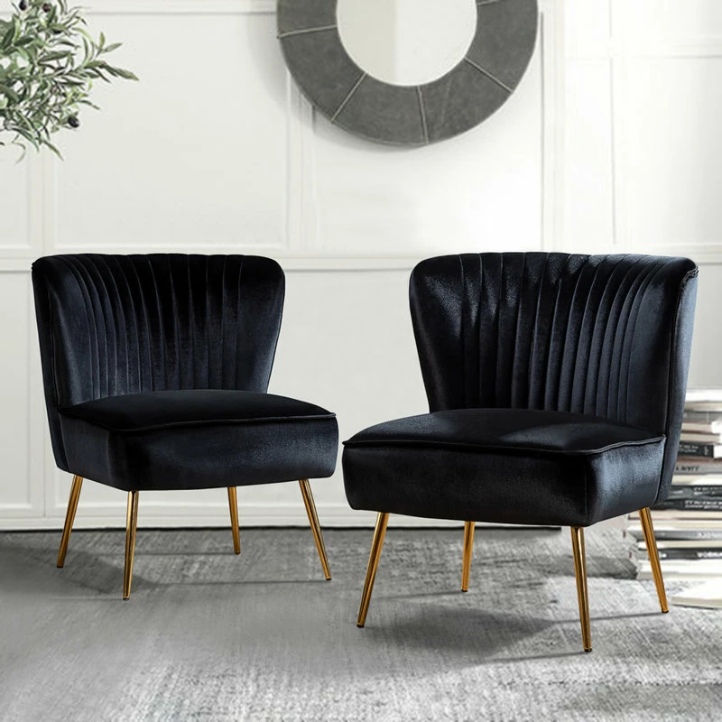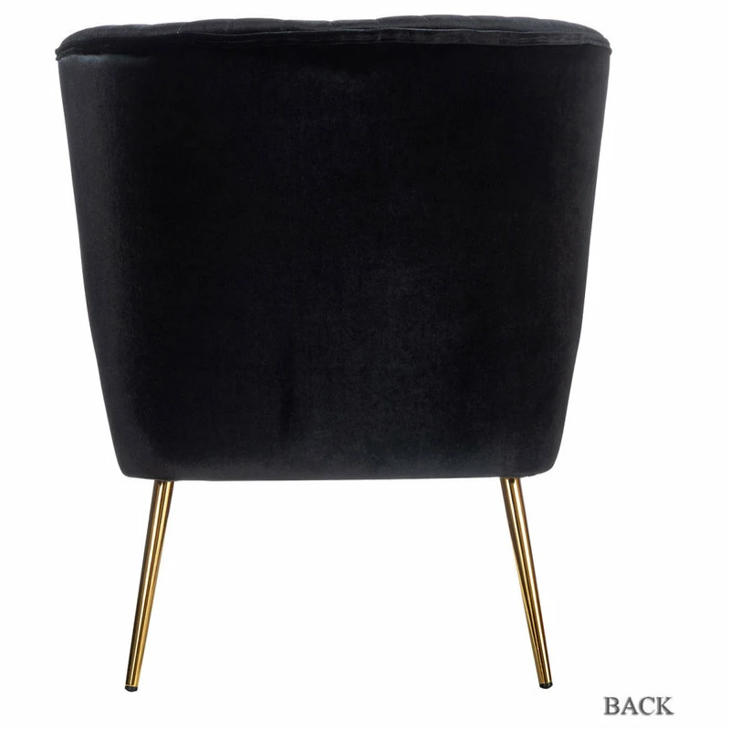 Classic and traditional style accent chair with pleated details.Made with premium velvet fabric,comfortable for skin touch. High-density foam filling with a solid and manufactured wood frame provide comfort and support.The slender polished gold metal legs bring the modern design,and add to the timeless fashion of this piece.It’s the perfect pick for living room and bedroom.