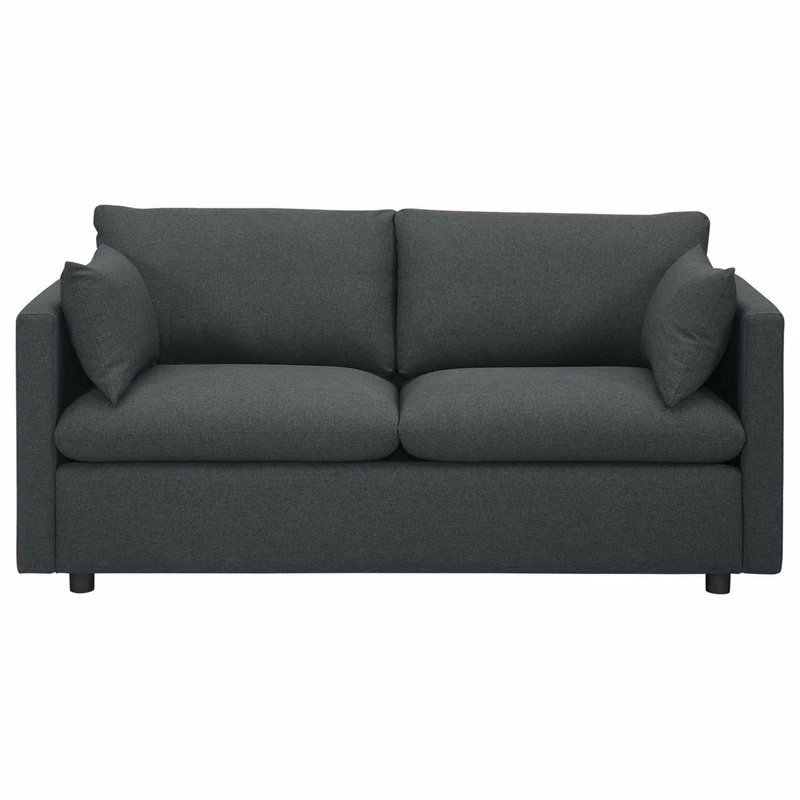 Lounge in style with Activate. A versatile addition to a family room, apartment, office, or small living space, Activate is a cozy modern sofa made with dense foam padding, and upholstered in soft polyester fabric. Rounded cushion corners and complementing accent pillows grant this sofa a contemporary look that’s echoed by its calming color, streamlined profile, and subtle wood legs. Say goodbye to the days of hauling heavy furniture. Activate offers modern-day convenience as it ships directly to your home or apartment in a portable, compact box. With a casual yet tailored aesthetic, this living room sofa easily unpacks to become a favorite lounge spot in your home. Sofa Weight Capacity: 1102 lbs.