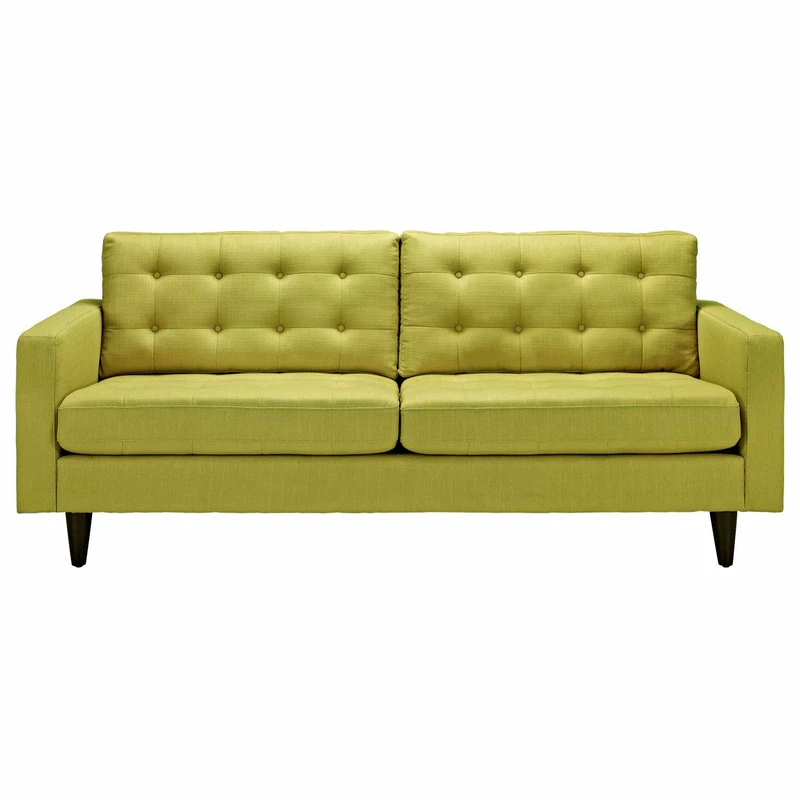 End the rule of unjust sovereignties that wage a useless war for your interiors. Empress leaves the would-be heiress of holistic furnishings in the dust with a design that rivals any competitor. Empress is heralded with deeply tufted buttons, plush cushions, and armrests that convey that perfect air of nobility. The solid wood legs come with plastic glides to prevent floor scratching, and the bonded leather upholstery leaves the recipients feeling richly rewarded.