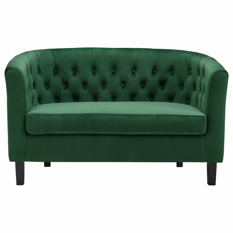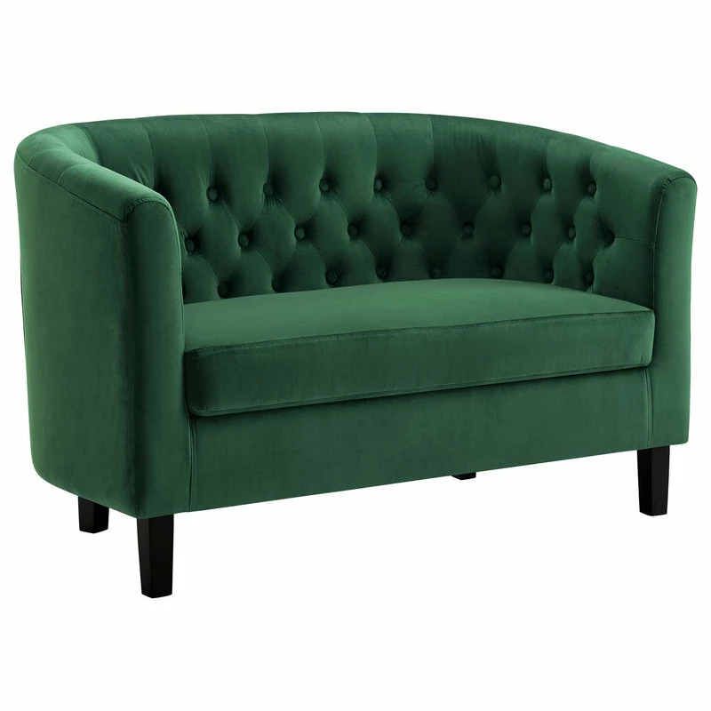 Intrinsically luxurious, Prospect Performance Velvet Loveseat is a throwback to the classic Chesterfield design, while delivering an engaging modern look filled with passion and drive. Button tufting and sweeping curves blend to form a contemporary lounge piece that all will be drawn to. This cozy loveseat with espresso stained wood legs and non-marking foot caps features comfortable foam padding and a soft, stain-resistant performance velvet polyester upholstery.