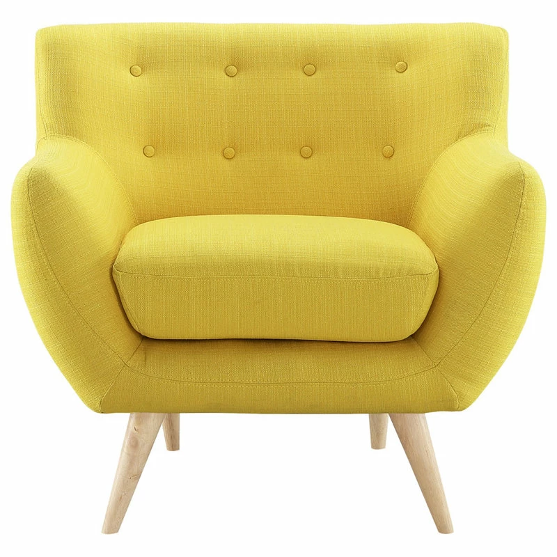 Wholesale Description: Take notice and engage your sensibilities with this plush dual cushion, organically shaped armchair. Remark is gracefully positioned on solid natural wood dowel legs designed according to mid-century sentiments. Whether settling in with coffee and brunch, or entering a spirited discussion with friends, Remark’s polyester upholstery, two rows of finely stitched back seat buttons, and organic form ensure an eye-catching appeal at every turn. Bring depth and modernity to your contemporary living room or lounge area with the Remark mid-century modern style armchair.