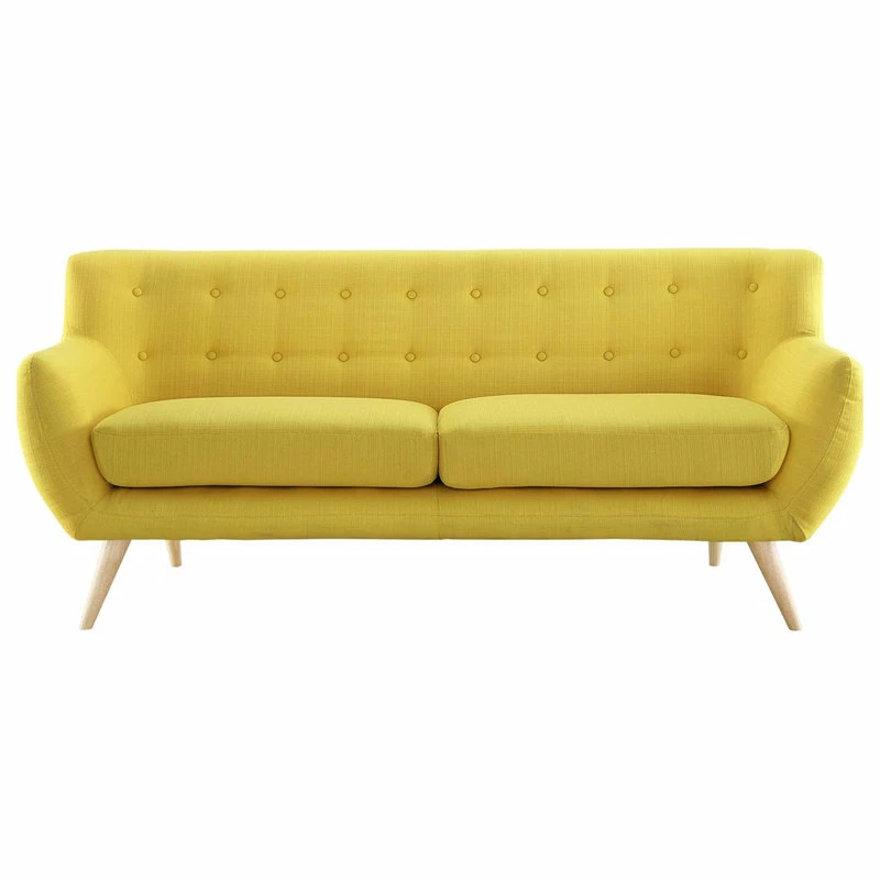Take notice and engage your sensibilities with this plush dual cushion, organically shaped loveseat. Remark is gracefully positioned on solid natural wood dowel legs designed according to mid-century sentiments. Whether settling in with coffee and brunch, or entering a spirited discussion with friends, Remark’s polyester upholstery, two rows of finely stitched back seat buttons, and organic form ensure an eye-catching appeal at every turn. Bring depth and modernity to your contemporary living room or lounge area with the Remark mid-century modern style loveseat.