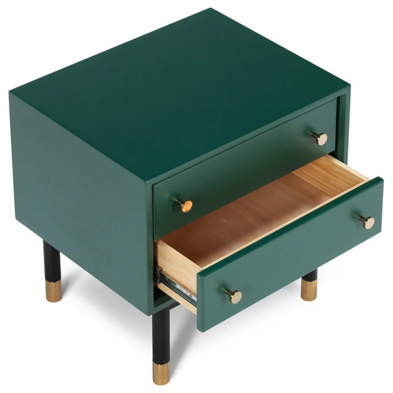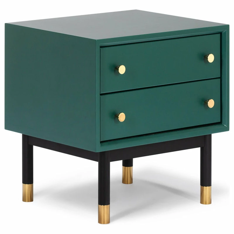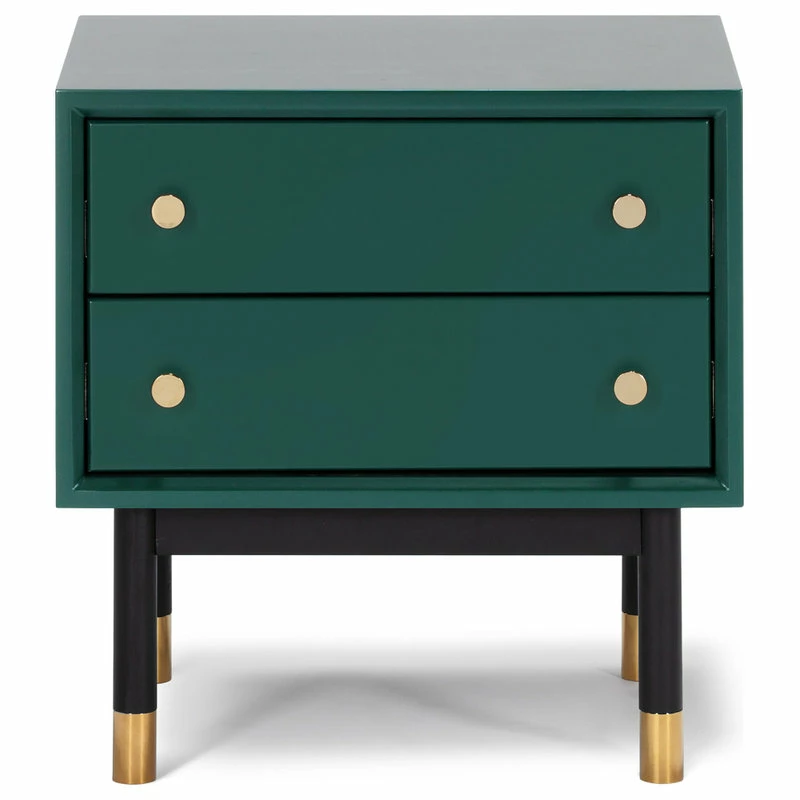 From chic gold knobs to tubing on legs, it’s all in the detail for this line. Lofted on slender legs, this side table is made of solid wood in satin green finish for light and casual look with a significant dose of charm.