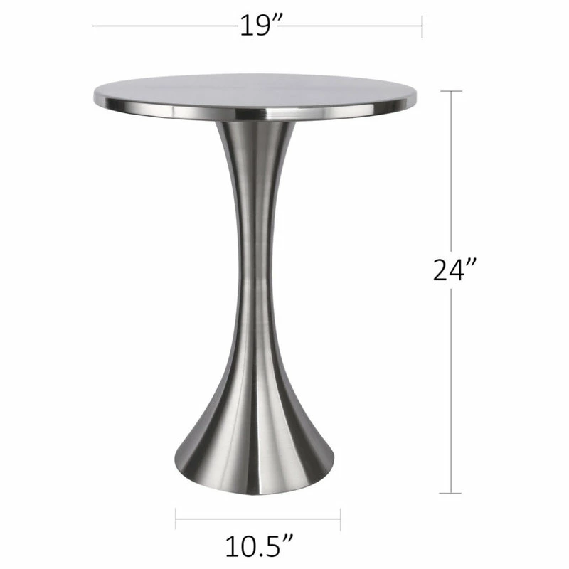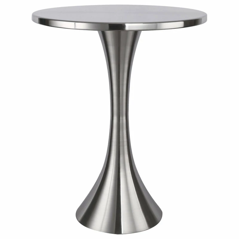 - This beautiful brushed nickel accent table is a versatile piece of furniture that can add a unique and modern touch to any space. MODERN STYLE