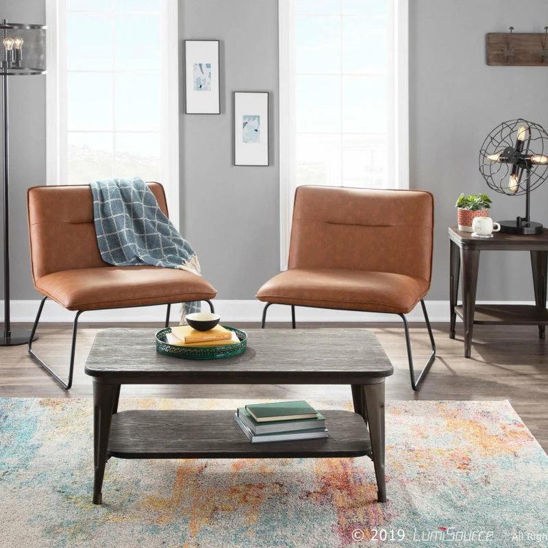 The Casper Accent Chair by LumiSource brings comfortable seating in a stylish and slim design to your home. This chair features a padded seat and back upholstered in sleek faux leather. Black metal sleigh legs provide durable support and contribute to the industrial style of the chair. Add as seating to your living room, bedroom, or office with this simple yet stylish chair. Available in a variety of upholstery colors, choose the one that fits your space the best.