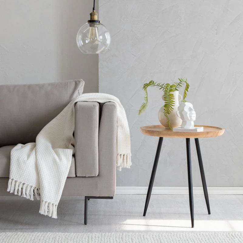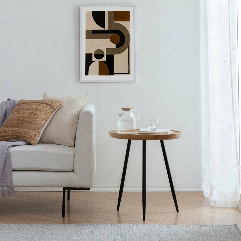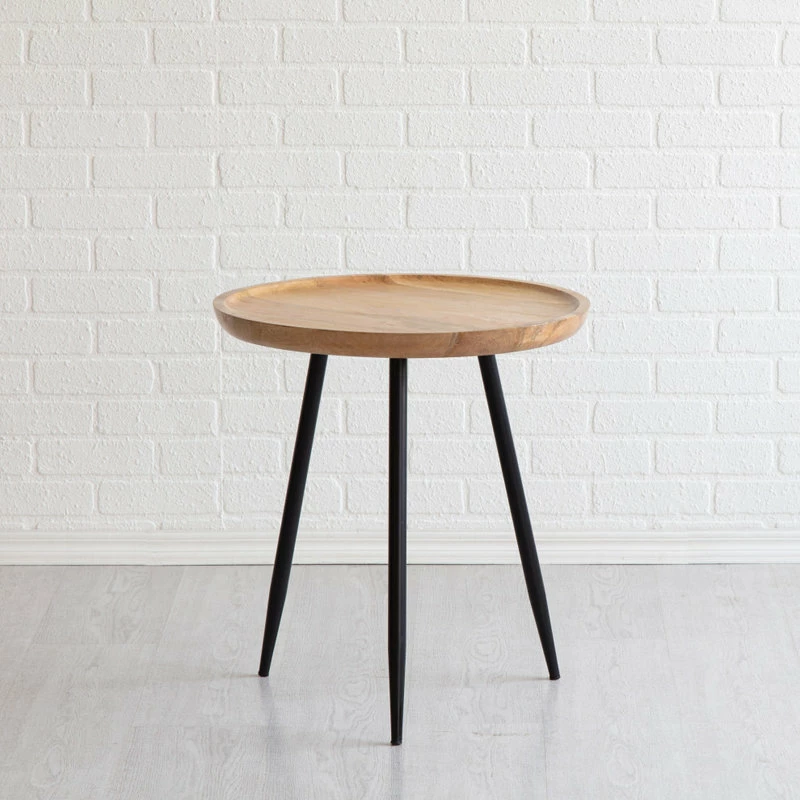 This side table never seems out of trend- so classic! Crafted from solid wood, the chunky top feels reliable for your favourite potted plant, lamp, or cold coffee. The tapered metal legs are angled just the right way to elevate those awkward corners. Expertly crafted by hand, it will fit perfectly in any modern home. Made of mango wood, the tabletop retains its organic energy and warmth. It’s like a small connection to the natural world- a detail we love!