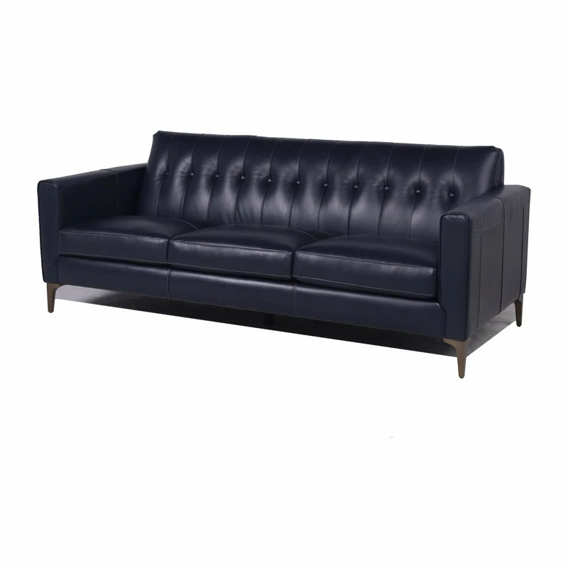 Outfit your living room in modern sophistication with this icon of mid-century modern sofa design. This showstopper sofa is covered in rich top grain leather and features a super chic tight back design with button detailing for a clean look and expertly tailored finishes. Brushed rose gold metal legs further accentuate the simple elegance of this gorgeous sofa.