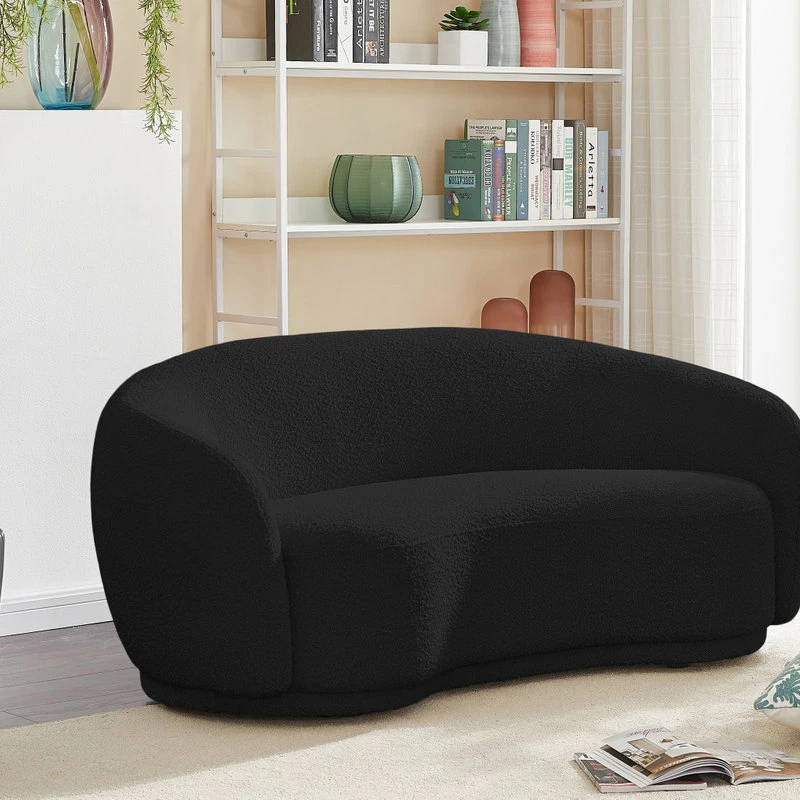 Curl up and relax on this Hyde black boucle fabric . This wide, rounded is as comfortable as it is stylish, making it an excellent addition to your living space. Rich black boucle fabric upholstery gives a soft touch against your skin and its deep plush cushion provides you with cozy support. Its rounded back is both chic and homey, with its contemporary design sure to add flair to your modern home.
