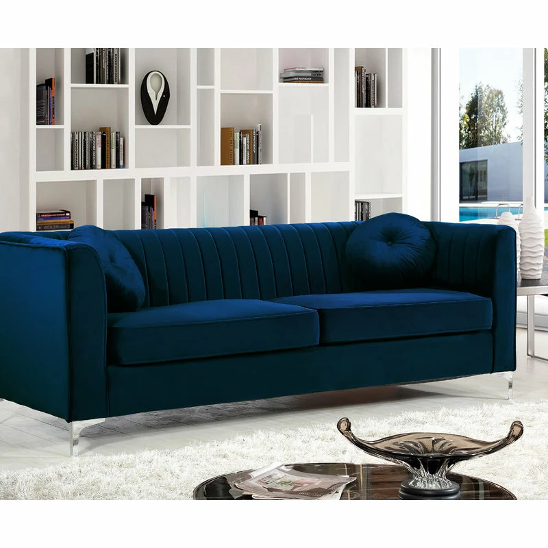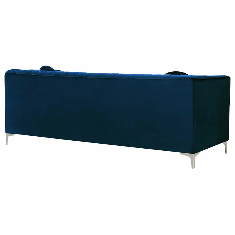 Add a warm, luxurious accent to your living room with the Isabelle Velvet Sofa. Blending traditional design and modern details, this sofa features tufted velvet upholstery and chrome legs. This versatile couch can be used to complement the other pieces in your space or stand on its own as the stunning centerpiece of your living room.