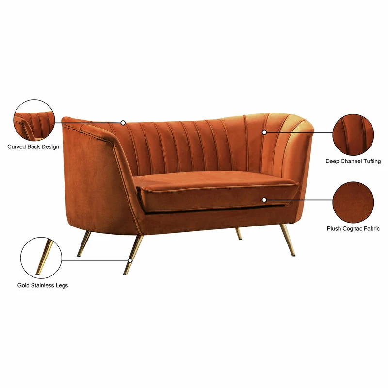 Be the first to review “Meridian Furniture Margo Cognac Velvet Loveseat, Cognac” Cancel reply