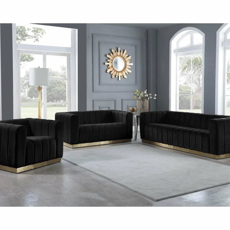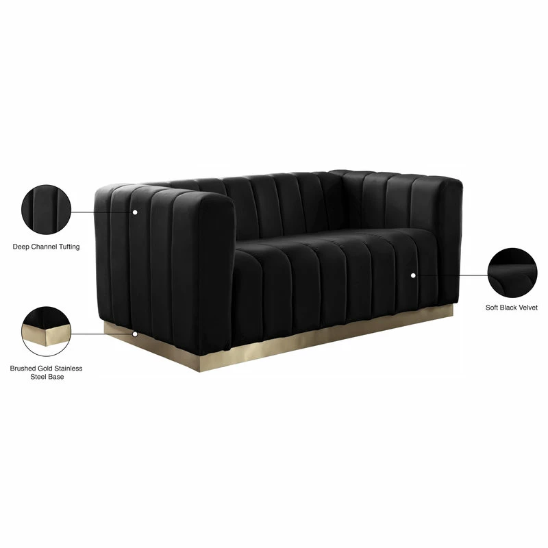 Elegant and eye-catching, the stunning Black Velvet Marlon Loveseat from Meridian Furniture is the perfect addition to any space.