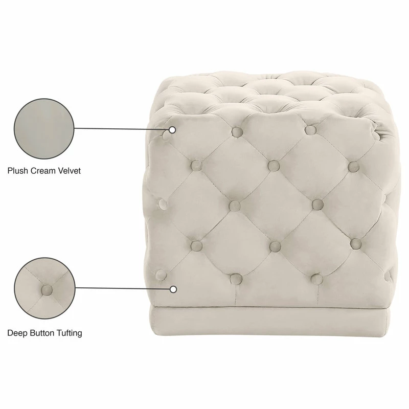 Meridian Furniture Stella Velvet Ottoman/Stool, Cream