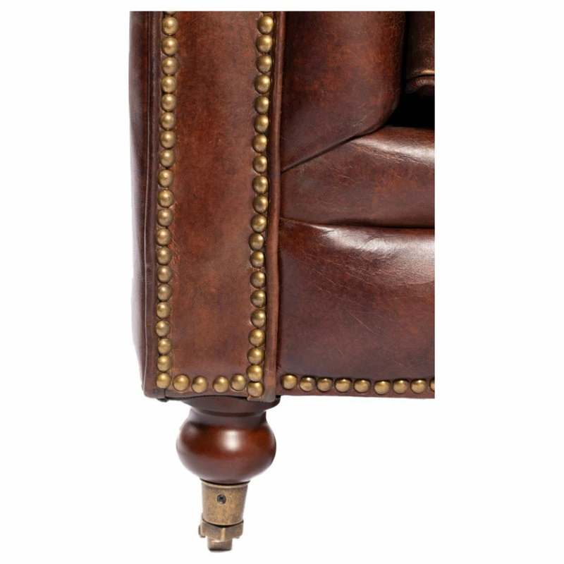 Capturing the bold elements of traditional design, the Birmingham Sofa adds sophistication to your living space with its top-grain leather’s rich brown. Sharp details are apparent in the chesterfield’s tufted back, rolled arms, and meticulously placed brass detailing pairs nicely with an Old Fashioned.
