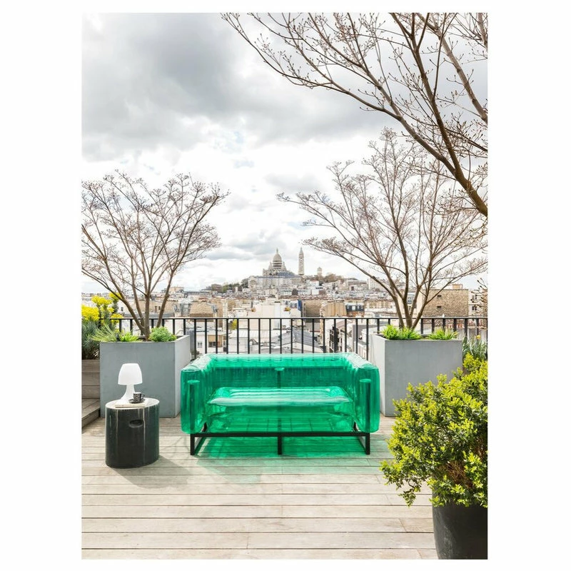 The YOMI crystal is adorned with elegant piping that emphasizes its contemporary shapes. This hand-sewn detail of character blends wonderfully with the transparency of the material. MOJOW furniture enters a new dimension affirms its design and its uniqueness for all indoor and outdoor living spaces.