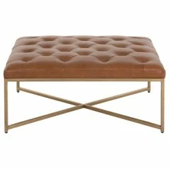 Sunpan Modern Home Endall Square Leather Coffee Table/Ottoman, Antique Brass, Camel