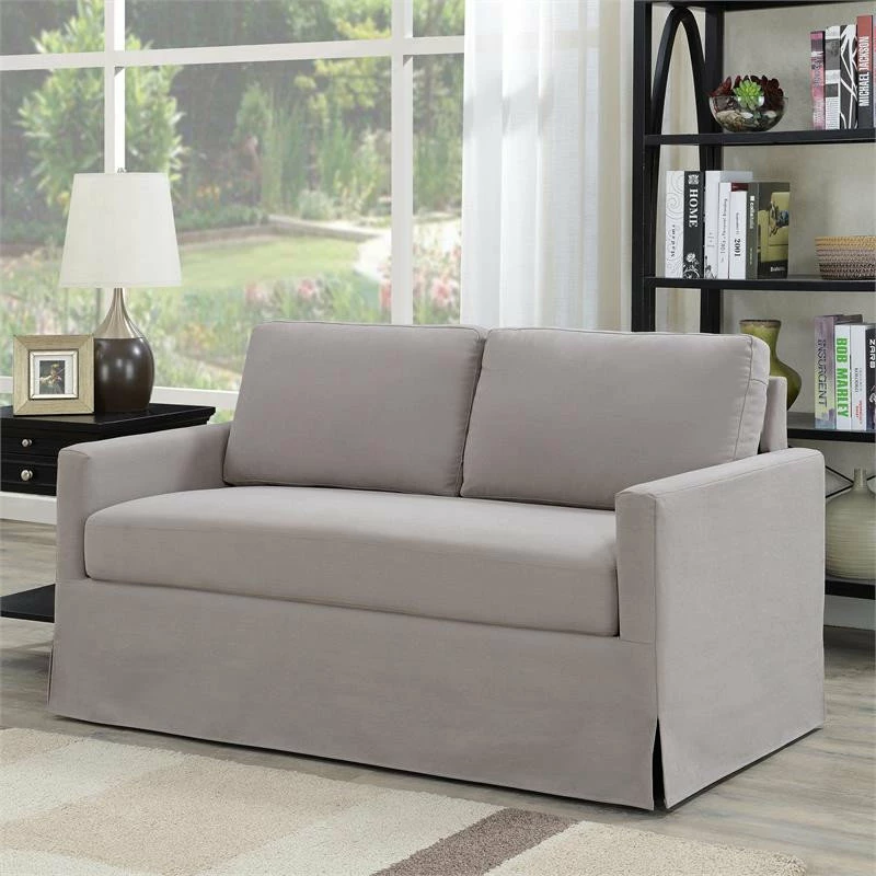 When you need to add simple, comfortable seating to a living room, den, or other space in the home, this well-designed piece is ready to go. A smooth single cushion provides superior support with foam padding, and a pair of lofty back cushions encourage your guests to get comfortable. Squared track-style arms add definition without demanding more floor space, and a slipcover-style bottom edge adds a hint of traditional charm into the modern design. Ideal for adding accent seating without making a room feel overly crowded, this clever sofa may just be the best seat in the house.