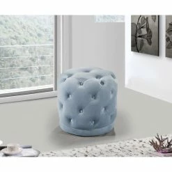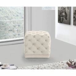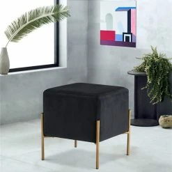 Meridian Furniture Jax Velvet Ottoman/Stool, Black, Gold Base