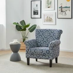 Belleze Arm Fabric Upholstered Chair Nailhead Trim Accent Chair, Navy/ White