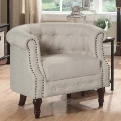 Belleze Arm Fabric Upholstered Chair Nailhead Trim Accent Chair, Gray