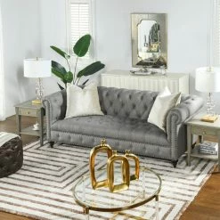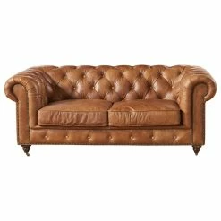 Crafters And Weavers Leather Chesterfield Arm Chair, Light Brown