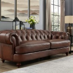 Hydeline USA Hydeline Newport Top Grain Leather Sofa Collection, 94″ Sofa