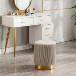 Duhome Elegant Lifestyle Round Pleated Golden Base Velvet Ottoman, Khaki