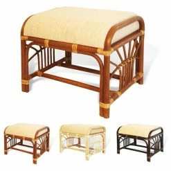 SK New Interiors Ottoman Footstool Handmade ECO Natural Rattan Wicker With Cream Cushion, Colonia