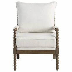Office Star Products Fletcher Spindle Chair In Linen Beige Fabric With Brush Charcoal Finish