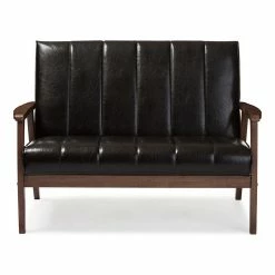 Baxton Studio Full Leather Small Storage Cube Ottoman, Black